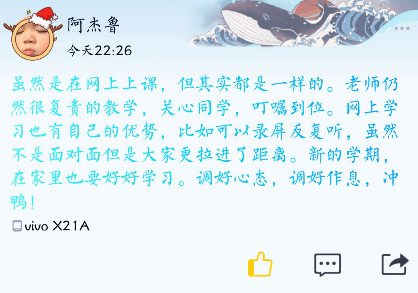 此外,此次特殊的开学模式为老师们的教学工作提供了宝贵的经验,也让同学们有了不一样的学习体验,给商院人留下了一段共同的特殊回忆:疫情当前,即使在家办公学习,商院人也能保持对工作的热情、对知识的渴望。